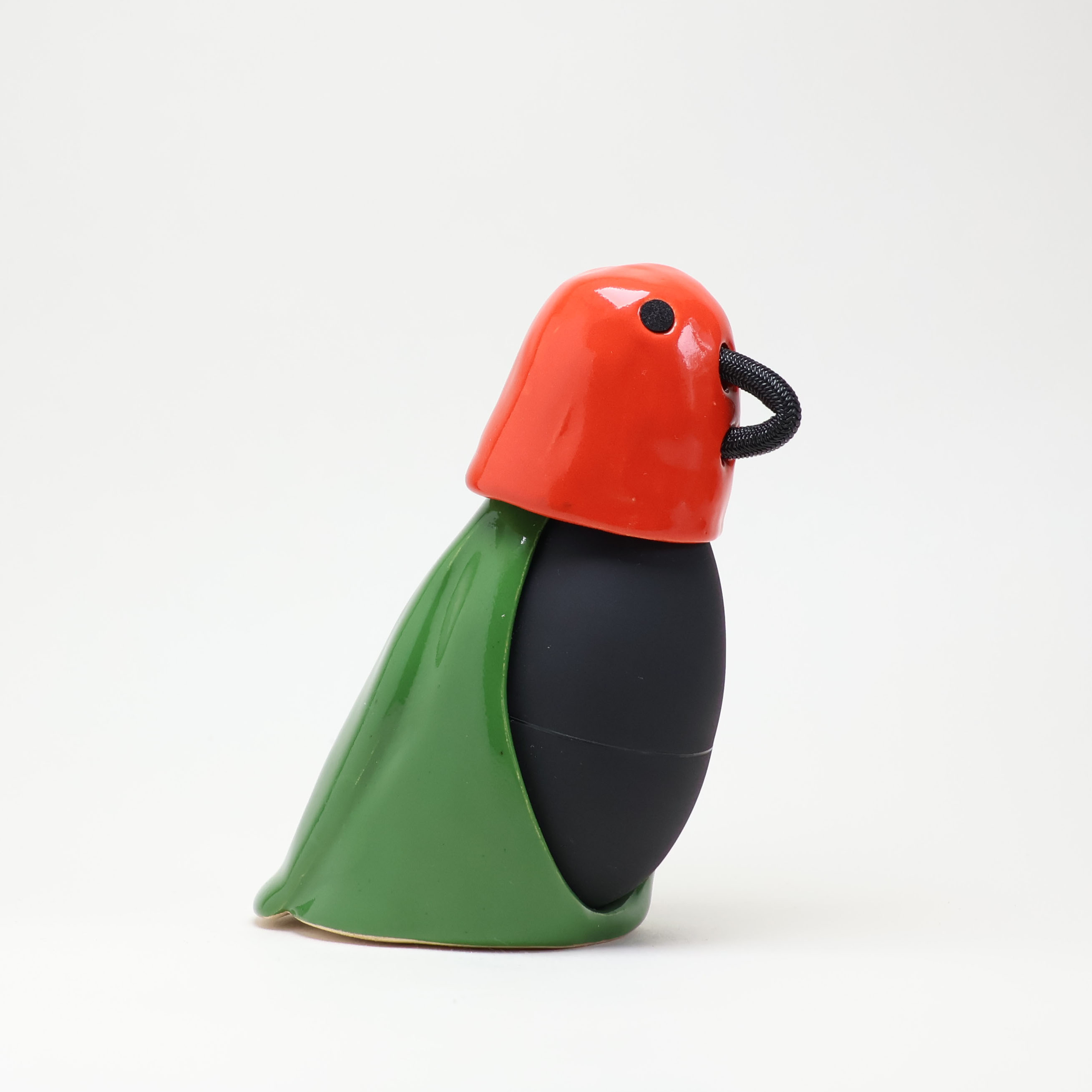 Pouet is a ceramic and rubber bird that sings when you press its belly. Each piece is unique, produced in a limited series. Body and head are made of ceramic, and beak and belly are made of rubber. Available at
